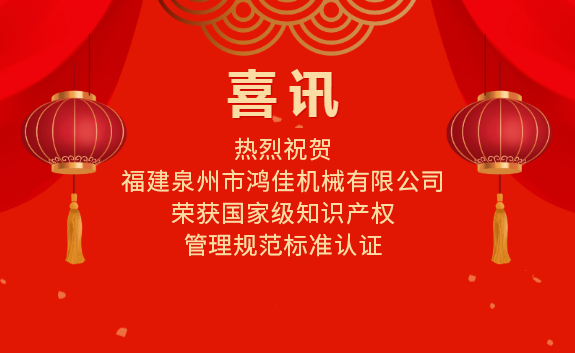 喜訊|熱烈祝賀福建泉州市鴻佳機(jī)械有限公司榮獲國(guó)家級(jí)知識(shí)產(chǎn)權(quán)管理規(guī)范標(biāo)準(zhǔn)認(rèn)證